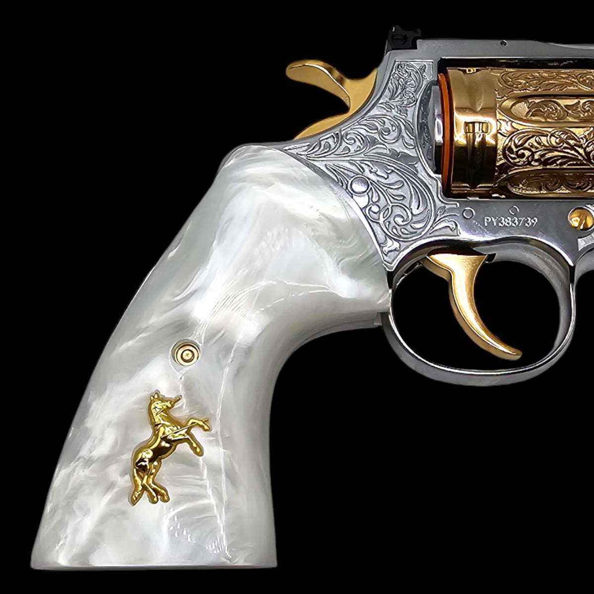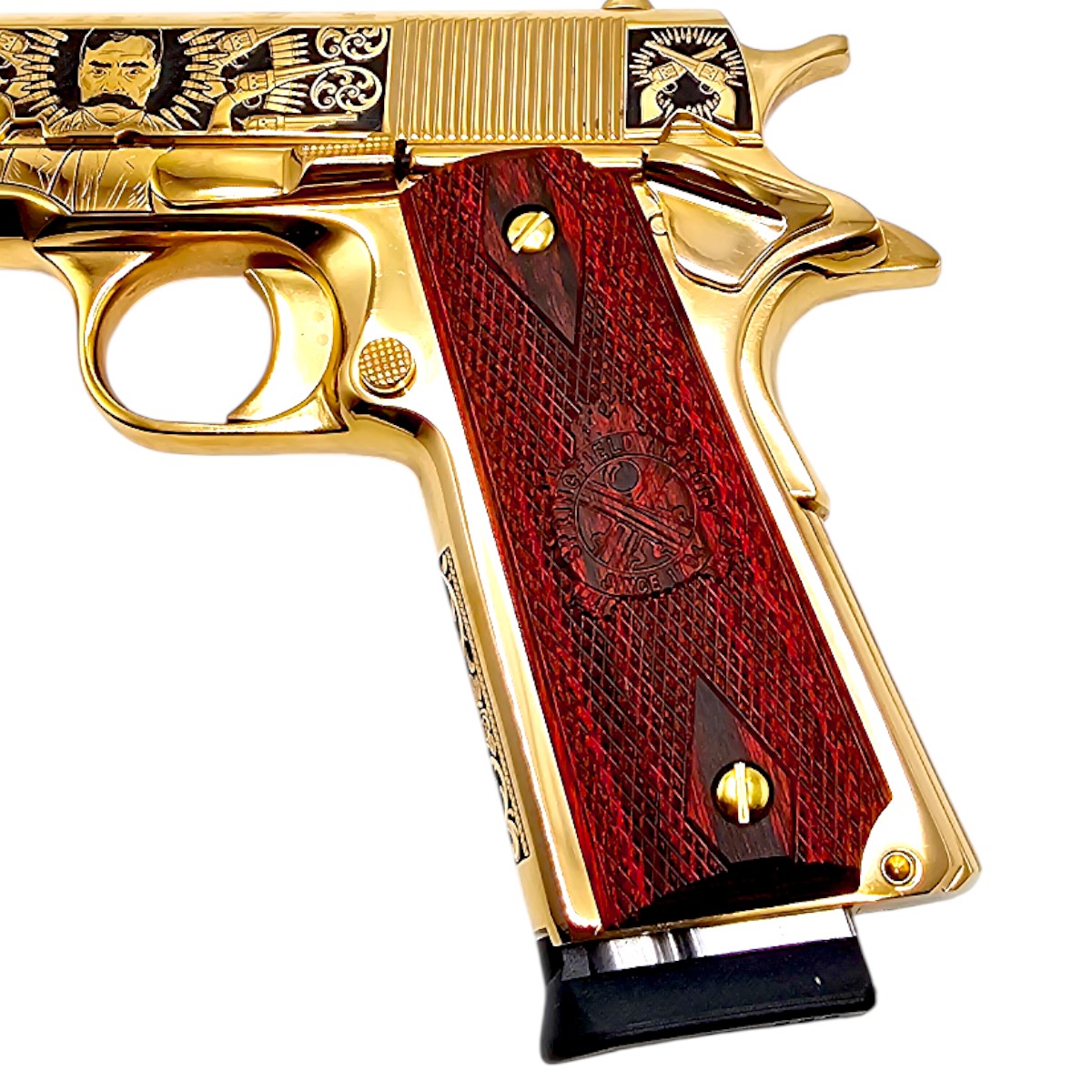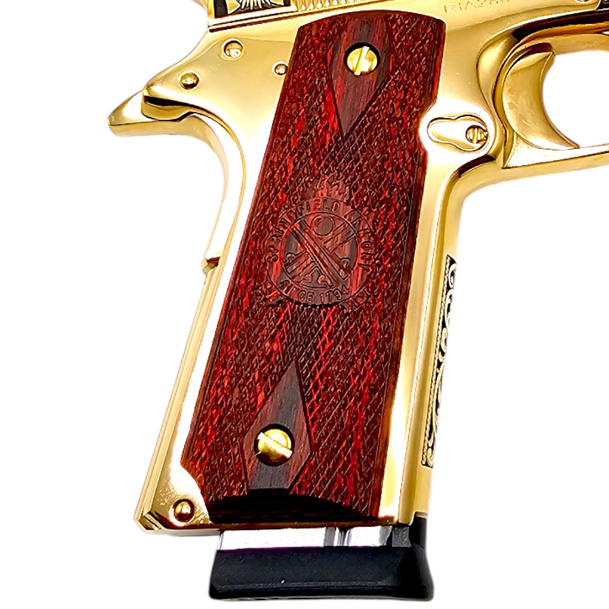 From deep laser scrollwork to 24K gold electroplating — we turn standard parts into showpieces. Whether you want to personalize your own grips or build a full custom setup.