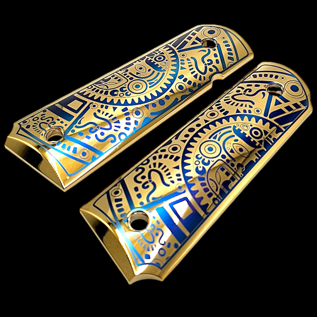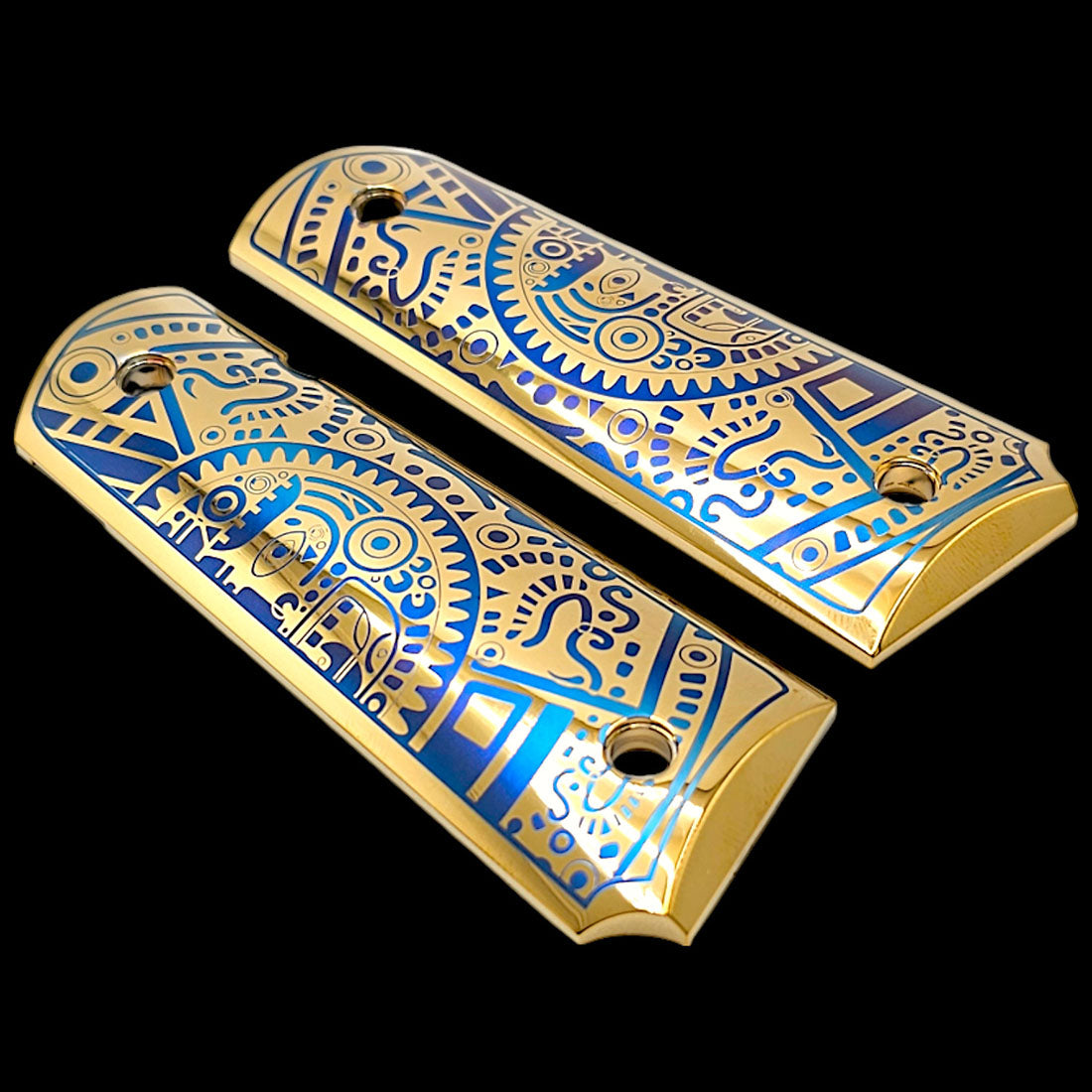 Luxury 24K Gold Plated 1911 Grips - Full Size Mexican Heritage Design | Premium Custom Pistol Grips w/ Matching Gold Screws