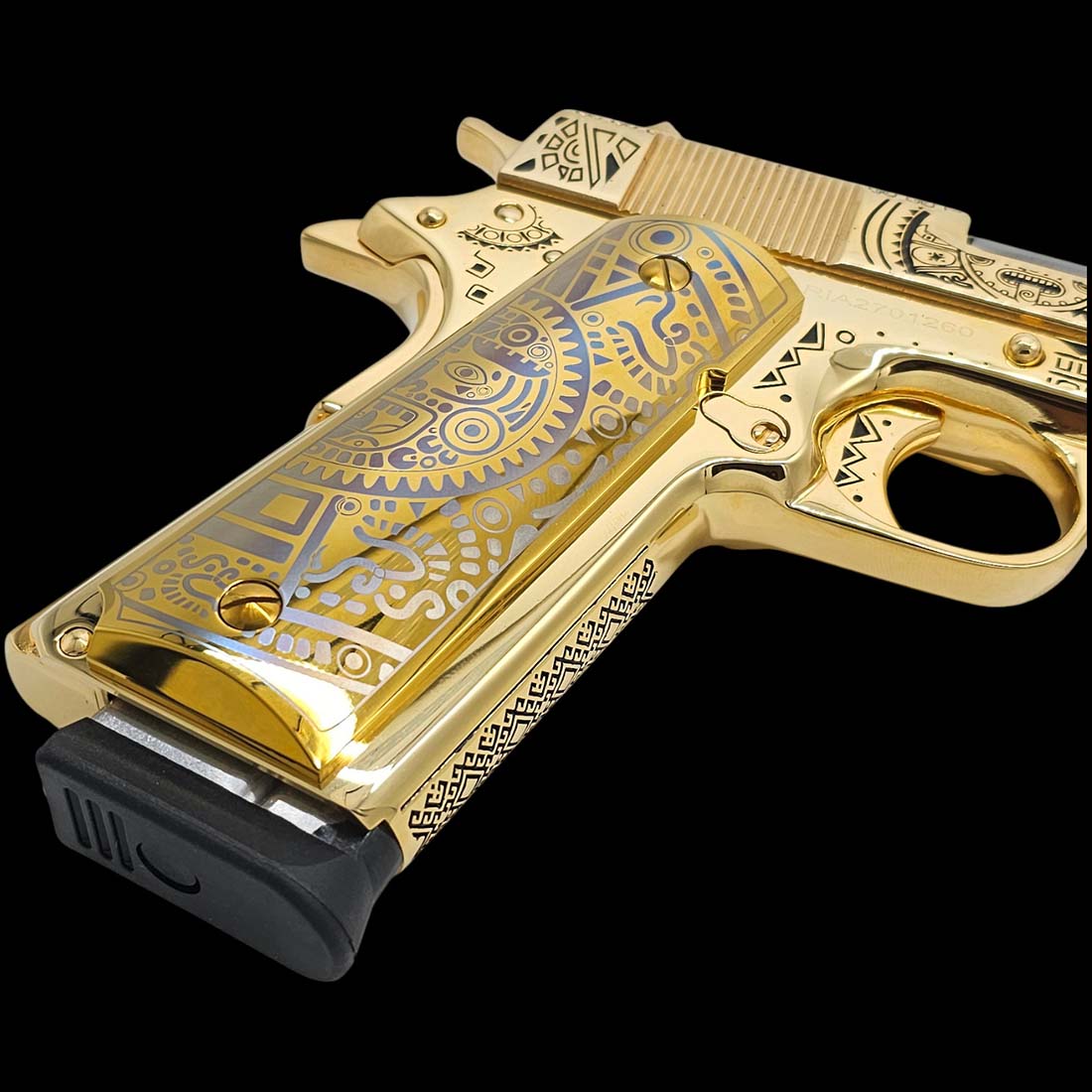 Embrace Heritage: Exquisite 24K Gold Plated 1911 Aztec Warrior Grips